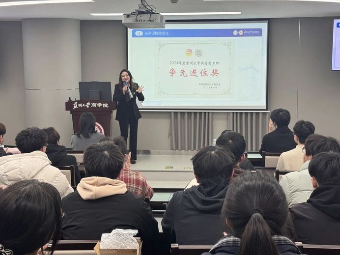 马龙剑围绕“纪律:商业世界的隐形盔甲”进行主题分享。他结合丰富的商业案例,深入剖析了纪律在团队管理和战略执行中的核心价值,强调纪律不仅是未来商业领袖的隐形盔甲,更是个人和组织成功的必备素质。此外,他还强调要将纪律意识融入团学骨干的日常学习与工作中,以高标准要求自己,努力成为德才兼备的未来领袖,为同学们注入信心与动力,助力他们在未来的征程中勇往直前。
