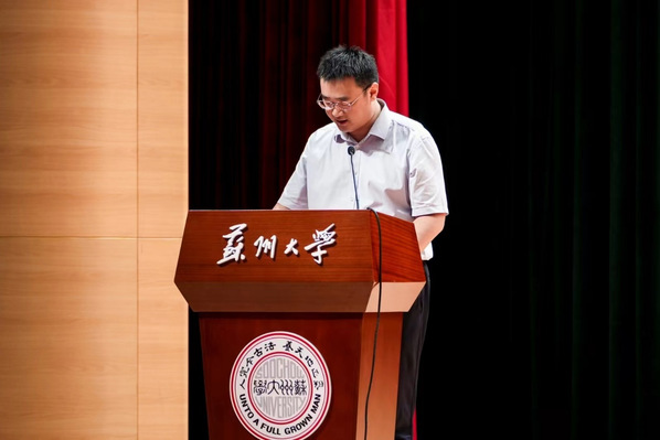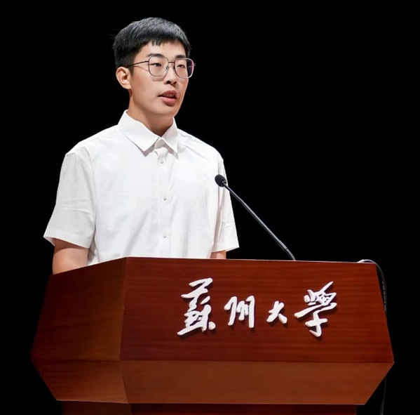 2024级研究生代表、应用经济学专业金融学方向的朱子轩同学围绕“志及山海 愿抵东吴”的主题,充满感情地追溯了自己跨越山海的支教经历,从黔山秀水到水韵姑苏,他即将开启下一阶段的学术之旅。他借冯博院长“过去我们成长于幸福的家园,未来我们要建设幸福的家园”的嘱托,以两种幸福与同学们共勉。