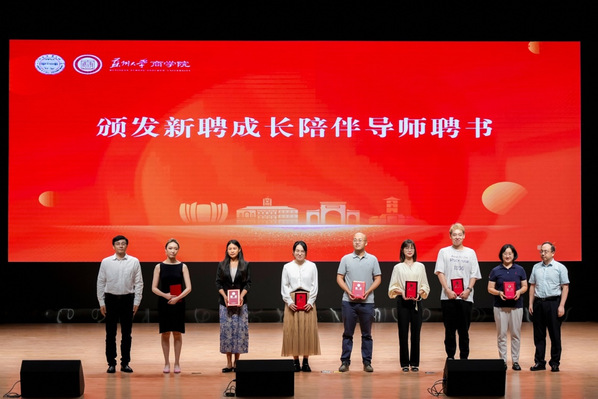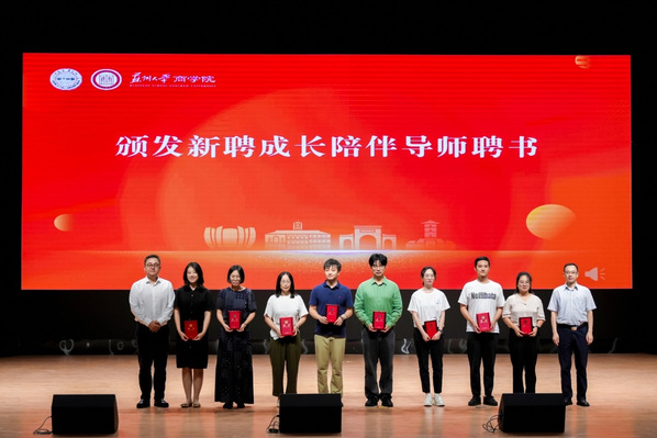 韩国三级片 副院长王要玉老师、徐涛老师、周中胜老师以及韩国三级片 专职纪检委员马龙剑老师为2024级新聘成长陪伴导师颁发聘书。