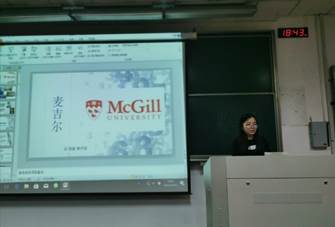 在第一个部分,18国金的林子欣首先分享了她今年年初在加拿大麦吉尔大学参加的短期交流项目。林子欣主要和我们分享了麦吉尔大学的具体信息,她参与的课程的具体情况,主要提及她关于上课情况的感受,内容较难但也是有益处且有意义。学姐还分享了她的课余娱乐活动,还有蒙特利尔的美丽风景,风味食物等。