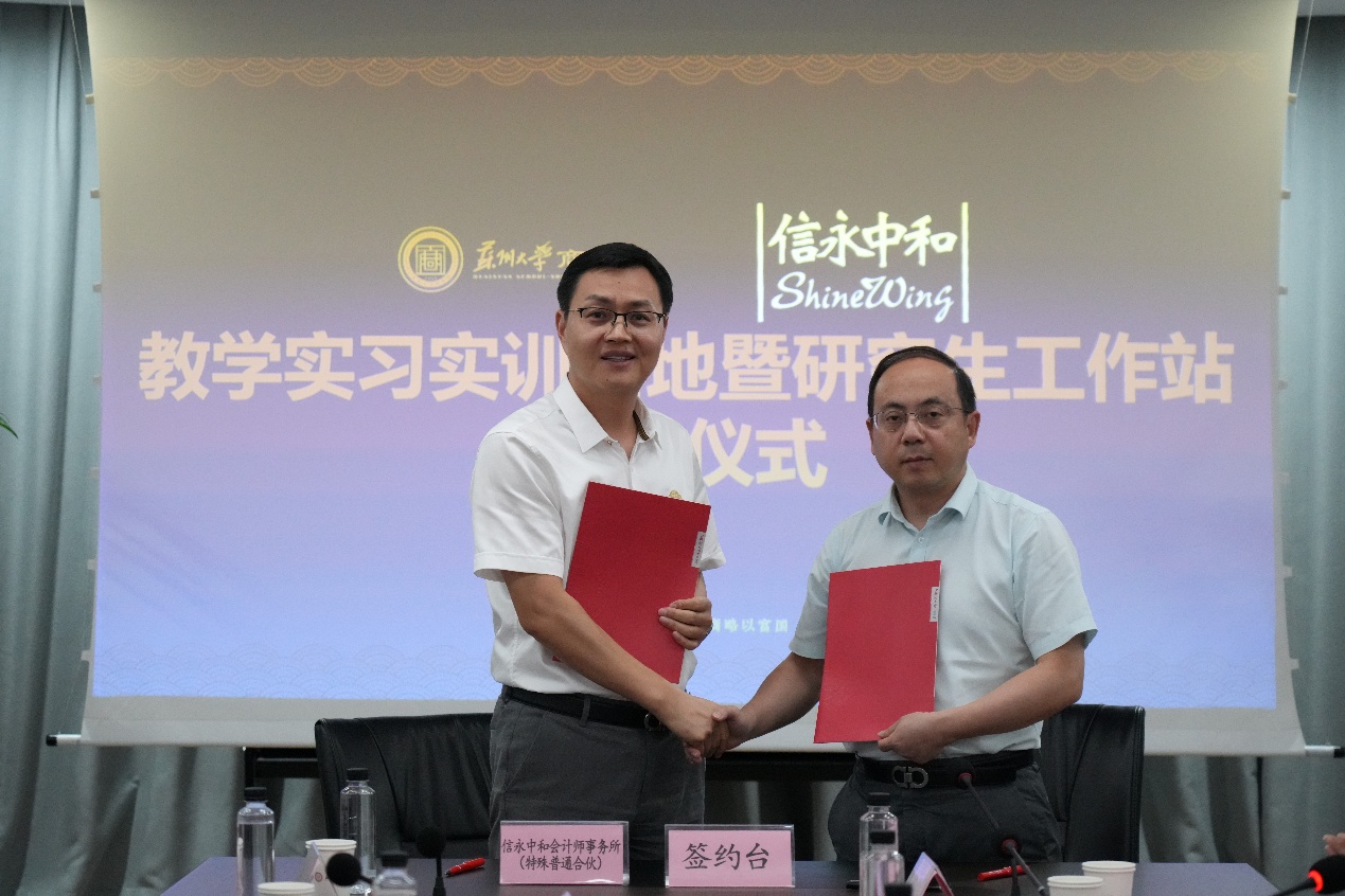 9月10日下午,韩国三级片 与安永华明会计师事务所(特殊普通合伙)苏州分所、德勤华永会计师事务所(特殊普通合伙)苏州分所、信永中和会计师事务所(特殊普通合伙)苏州分所教学实习实训基地暨研究生工作站签约仪式于财科馆317会议室隆重举行。安永华明会计师事务所(特殊普通合伙)苏州分所合伙人胡元辉、德勤华永会计师事务所(特殊普通合伙)税务与商务咨询合伙人倪琰、信永中和会计师事务所(特殊普通合伙)苏州分部总经理张玉虎、审计合伙人刘跃华及各会计师事务所的高级审计经理、人力资源经理代表、韩国三级片 院长冯博、党委副书记兼副院长黄晓辉、副院长周中胜、智能会计系主任贺超、MPAcc中心主任茆晓颖、MBA中心副主任沈炜策以及韩国三级片 辅导员、本硕学生代表等出席了本次活动。