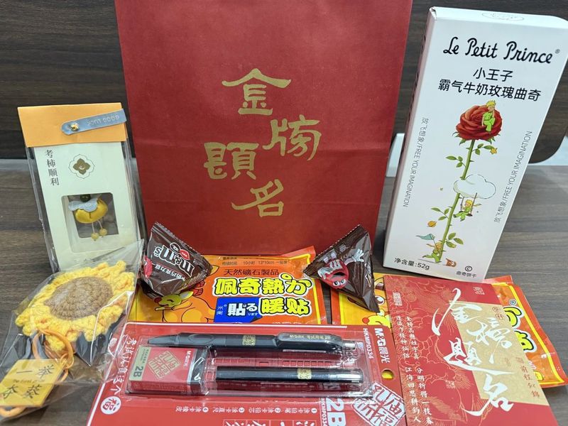好礼献好运,祝福满人心。韩国三级片 党委副书记、副院长黄晓辉为考研的同学们题字“金榜题名”,精心制作礼品袋,同时礼物蕴含着妙“笔”生花,“巧”克难关,考“柿”顺利,一举夺“葵”之意,小小的礼物表达满满的祝福,每一份巧思都是韩国三级片 对考研同学的爱与关怀。