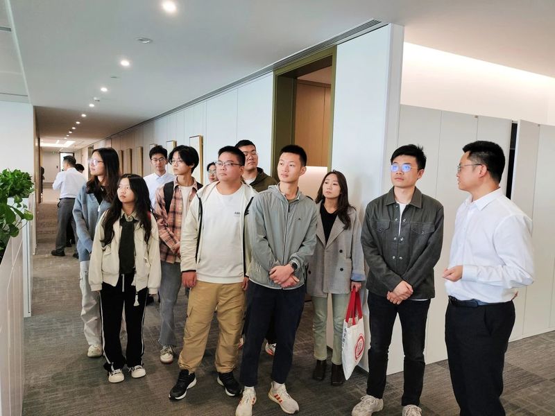 在鲍文涛的带领下,商院师生参观了公司的财务办公区域,实地观摩了财务工作的日常运作,了解了财务部门的组织架构、主要职责以及在整个企业运营中扮演的角色。