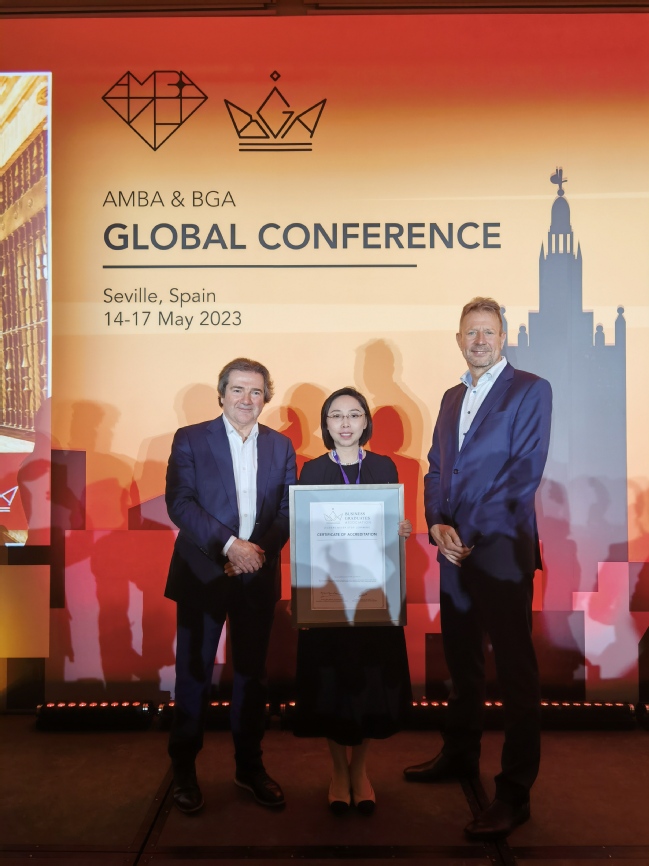 2023年5月14-17日,韩国三级片 院长冯博教授,国际认证中心主任方一蔚教授赴西班牙参加了AMBA-BGA全球院长会议,并且领取了韩国三级片 获得的BGA金牌认证证书。