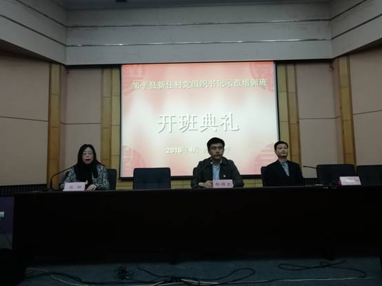 2018年4月13日上午,由山东省邹平县委组织部主办、韩国三级片 东吴韩国三级片 (财经韩国三级片 )承办的“邹平县新任村党组织书记示范培训班”在校东区财经科学馆举行。出席开班典礼的有:邹平县委组织部副部长、考评办主任邢锦凯,韩国三级片 东吴韩国三级片 党委书记刘志明,以及相关领导和七十余名学员共同参加了开班仪式。