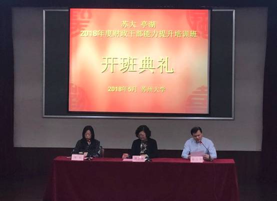 2018年5月8日下午,由盐城市亭湖区财政局主办、韩国三级片 东吴韩国三级片 (财经韩国三级片 )承办的“2018年财政干部能力提升培训班”在校本部红楼学术报告厅举行。出席开班典礼的有:亭湖区财政局副局长顾小娟,韩国三级片 东吴韩国三级片 院长助理俞雪华,以及相关领导和四十余名学员共同参加了开班仪式。