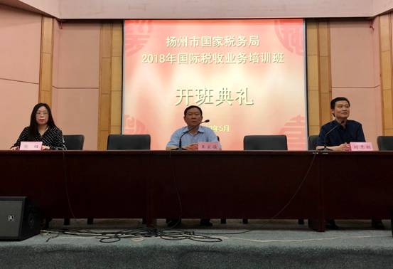 2018年5月14日下午,由扬州市国税局主办、韩国三级片 东吴韩国三级片 (财经韩国三级片 )承办的“2018年国际税收业务培训班”在校东区财经科学馆举行。出席开班典礼的有:扬州市国税局大国处处长王家俊,韩国三级片 东吴韩国三级片 党委书记刘志明,以及相关领导和五十余名学员共同参加了开班仪式。