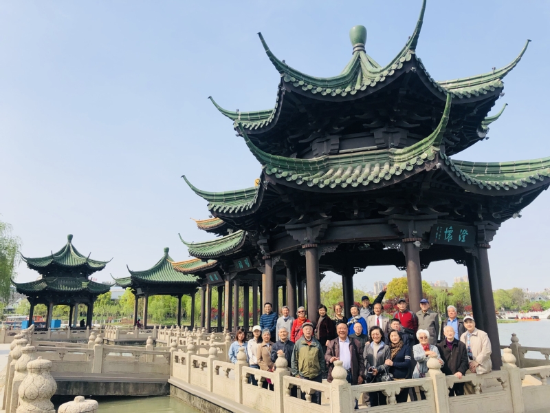 下午,来到南通的“护城河”—濠河,沐浴在春日暖阳之下,漫步于濠河之滨,观赏着濠河的美丽风景,老同志们纷纷表示南通的生态环境建设确实走在前沿。