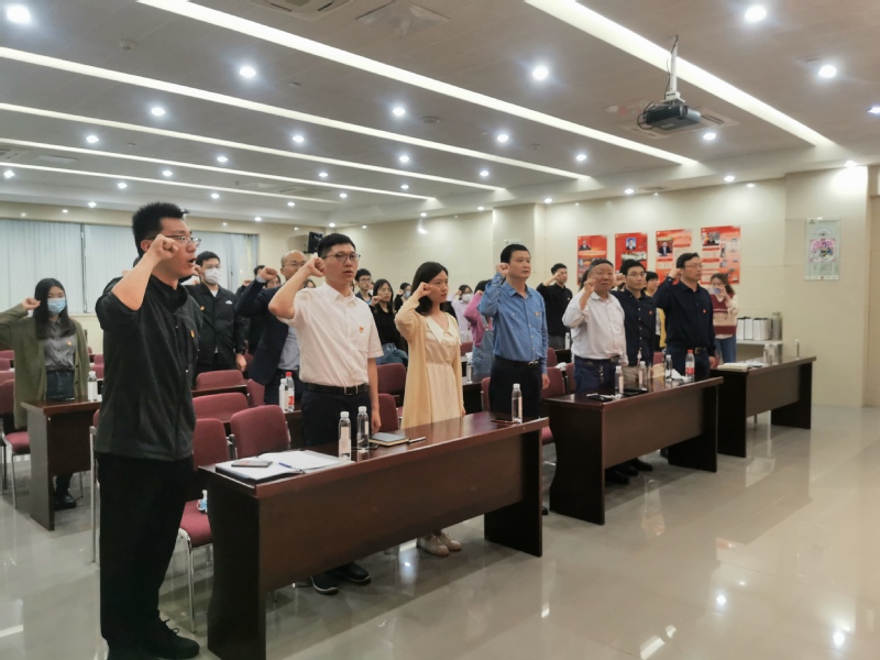 报告后,在苏州革命博物馆报告厅中,大家面对鲜红的党旗,在本科生第六党支部书记季存森老师的领誓下重温入党誓词,“我志愿加入中国共产党,拥护党的纲领,遵守党的章程……”铿锵的宣誓、庄严的承诺,让大家再次回到人生第一次入党宣誓那一刻,唤起了每个人对党神圣纯洁的那颗初心。