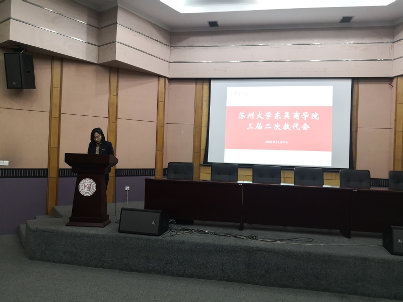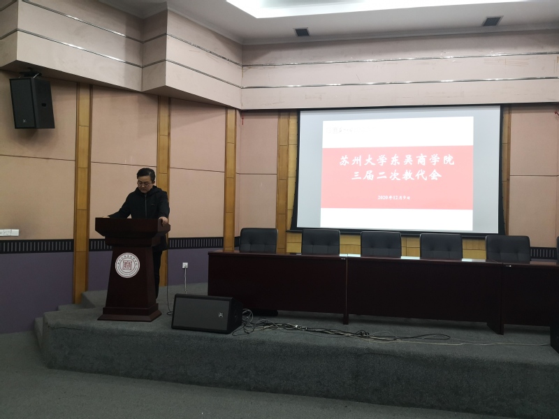 2020年12月9日,韩国三级片 东吴韩国三级片 三届二次教代会韩国三级片 二楼报告厅隆重召开。韩国三级片 全体领导及教代会代表、列席代表出席大会。会前由韩国三级片 工会主席俞雪华主持召开了预备会议,通过了大会主席团及秘书长名单和大会议程安排。大会由党委副书记、副院长董娜同志主持。会议在庄严的国歌声中开幕。