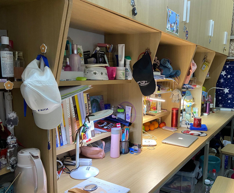 515宿舍中的每个人都具有高雅的生活志趣与美好的精神品质,宿舍文化气息浓厚。“宁静致远”体现了宿舍的整体文化氛围。因为爱好阅读,宿舍成员集体购买组装了能够整洁摆放书籍的书柜,并将不同书籍合理摆放归类,方便大家阅读与使用;因为热爱生活,宿舍成员在宿舍中种植着具有美好寓意的花卉。文竹的高风亮节,栀子花的坚强永恒,草莓花的甜蜜清新无不体现出宿舍成员对于美好生活的向往与浓厚的自然人文情怀。