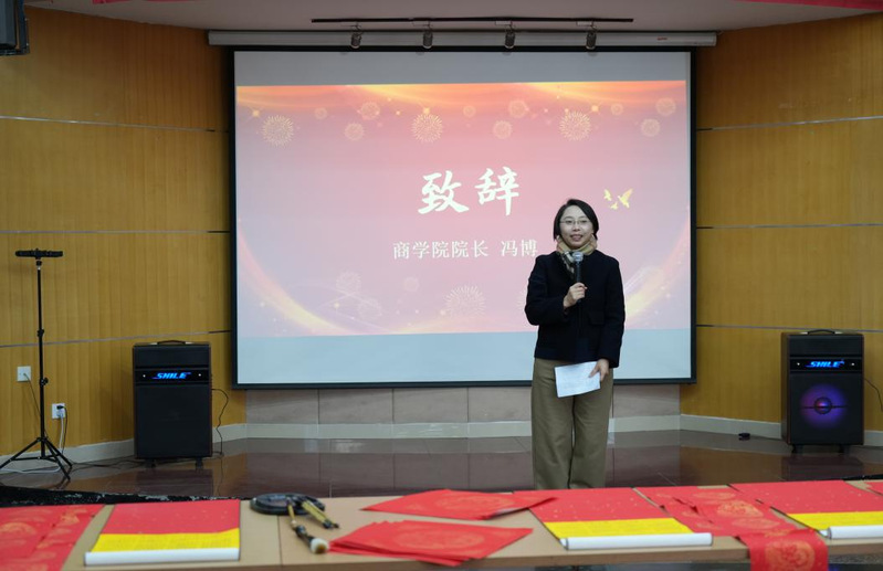 黄晓辉老师、国有资产管理处综合科主任芮雪老师和子曰书友会会长殷健为在场嘉宾撰写了颇是具有美好寓意和祝福的春联和年历卷轴。大家一同合影留念。